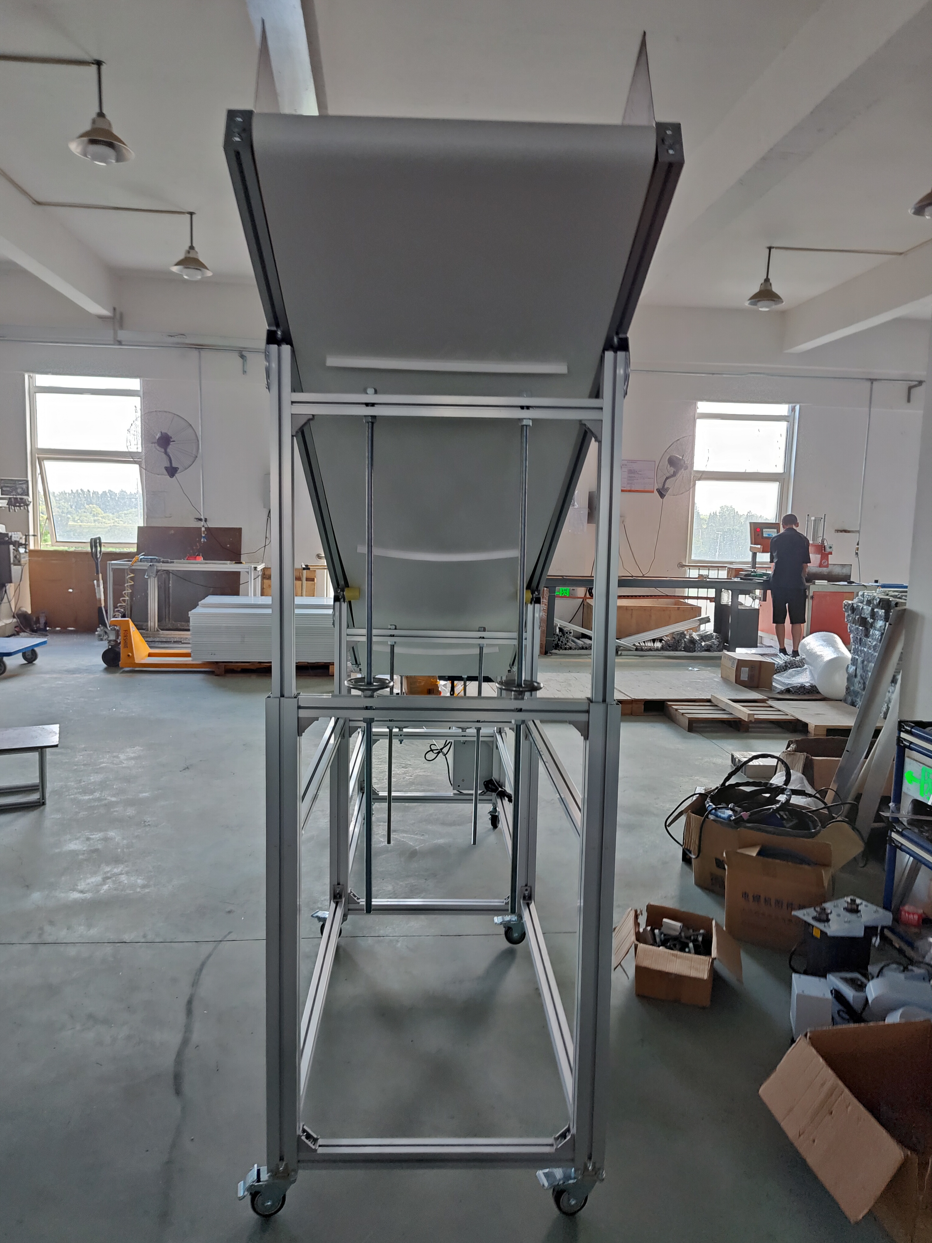 1、國(guó)標(biāo)4080型材厚度2.0mm做機(jī)身,國(guó)標(biāo)4040型材厚度2.0mm做支架,升降型材采用6262型材1.2厚,絲桿調(diào)節(jié)高度;